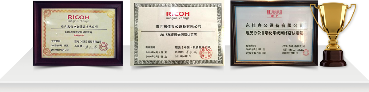 臨沂東佳辦公設備有限公司成立于1999年,是一家專賣臨沂理光打印機,臨沂復印打印一體機等理光辦公設備及專業(yè)維修服務于一體的臨沂復印機租賃服務性公司,在多年來的努力拼搏下,公司發(fā)展的發(fā)展突飛猛進,自2002年至今連續(xù)十九年的理光辦公設備代理商,先后獲得了理光(我國)授權臨沂總代理,理光數(shù)碼復印機,一體機臨沂總代理,理光辦公設備網(wǎng)絡認證店,理光辦公設備維修認定店等產(chǎn)品代理資質及維修資質。并配備了大量理光數(shù)碼辦公設備原裝零配件及其系列的純正耗材。